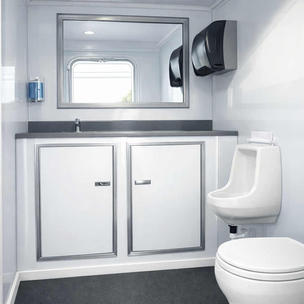 Discover the ideal bathroom solutions for your outdoor event! The Comfort Suites three-stall unit is designed to accommodate up to 350 guests, depending on the duration of the event. Provide your guests with the comforts of home by offering clean, private, and spacious stalls. Each climate-controlled unit includes one restroom featuring a toilet and urinal, along with two restrooms.